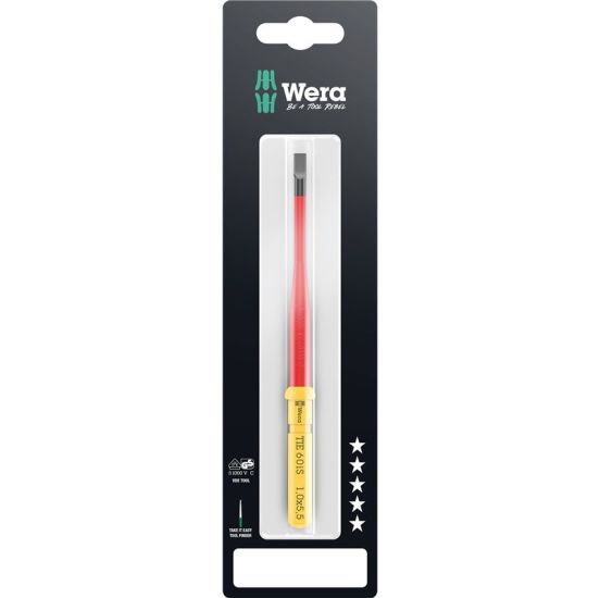 VDE klinge til Kraftform Kompakt greb-/udskiftningsklingesystem til lynhurtigt skift af klingen uden specialværktøj. Stykvis testet værktøj ifølge IEC 60900. Stykvis test ved 10.000 V for sikkert arbejde ved den godkendte spænding på 1.000 V. Med rullesikring og værktøjsfinderen Take it easy: Farvemærkninger efter profiler samt laserpåført størrelsesangivelse.