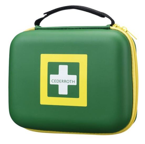 Førstehjælpssæt i tykt og slidstærkt materiale, der beskytter indholdet mod støv og fugt. Praktisk håndtag med justerbart velcrobånd. Transparente plastlommer gør indholdet overskueligt. Plads til eget tilvalg.