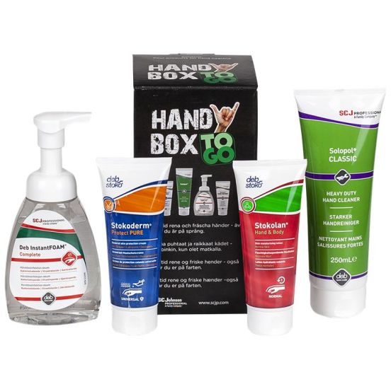 Færdigpakkede hygiejneprodukter fra SC Johnson i flot kasse. Sættet indeholder: