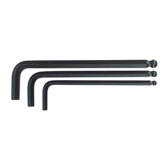 Af kromvanadiumstål. Sorte. Med kugleformet, sekskantet hoved i den lange ende af nøglen – hvilket tillader drejning også ved 30° hældning.