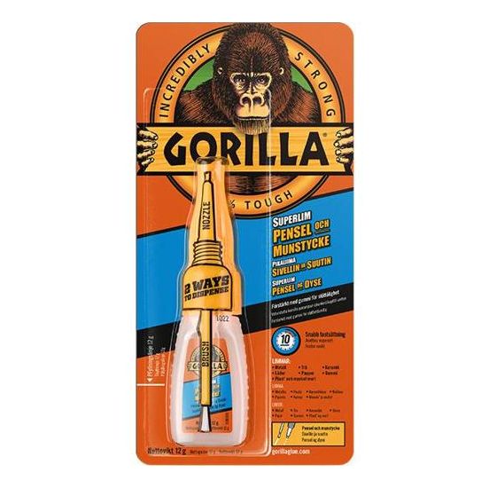 Gorilla Superlim er den superlim, der virkelig holder og størkner på kun 10 sekunder. Limen har små gummipartikler i sig, hvilket er lig med en lav risiko for, at limen revner ved eksempelvis slag, og dine reparationer bliver derfor mere holdbare. Vi kalder det særdeles slagfast. En flaske Gorilla superlim holder gummi, papir, træ, læder, metal, keramik og meget andet ordentligt på plads. Flaskens dyse har en indbygget metalstift, som forhindrer, at dysen tilstoppes.