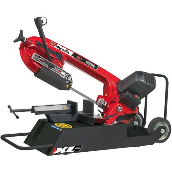Femi 1850W 787XL All road er den mobile metalbåndsav, der kan håndtere større snit på arbejdspladsen, helt op til 175 mm. Leveres med hjul til nem transport. Kølespray kan bruges til afkøling. Leveres med båndsavklinge med 8/12 fortanding. Femi har patent på denne sav. |