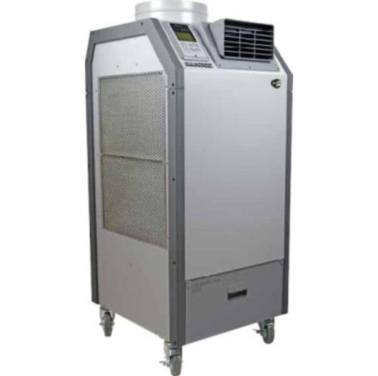 Varmepumpen har hjul under og kan derfor nemt transporteres og flyttes rundt efter behov.