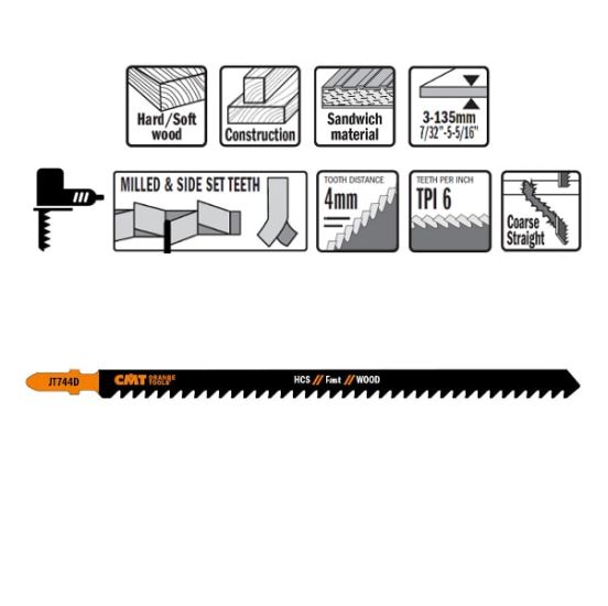 Stiksavsklinger. Meget hurtige, grove lige snit i tykt byggetømmer, hårdt/blødt træ (5-135mm) og sandwichplader.
